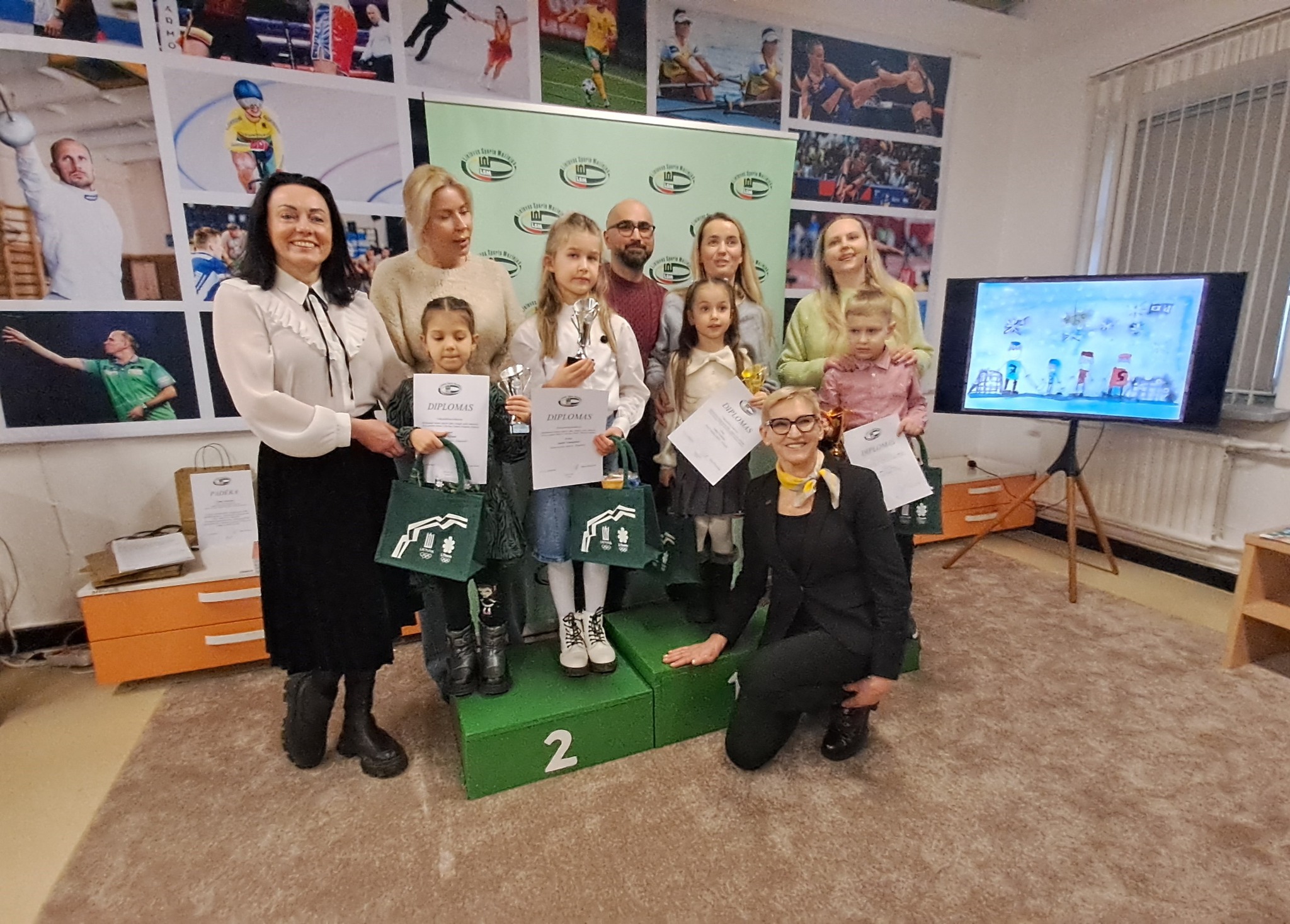 I, II ir III vietos laimėtojams taures skyrė Lietuvos sporto muziejus. Jas iškilmingai įteikė bei diplomais apdovanojo vaikus - direktorė Ilona Petrokienė. Džiaugiamės, kad ne tik laimėtojai, bet ir visi konkurso dalyviai gavo knygeles iš europarlamentaro Aurelijaus Verygos patarėjos, Kauno miesto savivaldybės tarybos narės Vaidos Pranarauskaitės. Šventėje dalyvavę vaikai ir pedagogai knygutes jau pasiėmė, o kitiems perduosime vėliau (įsteigta 300 vnt.)